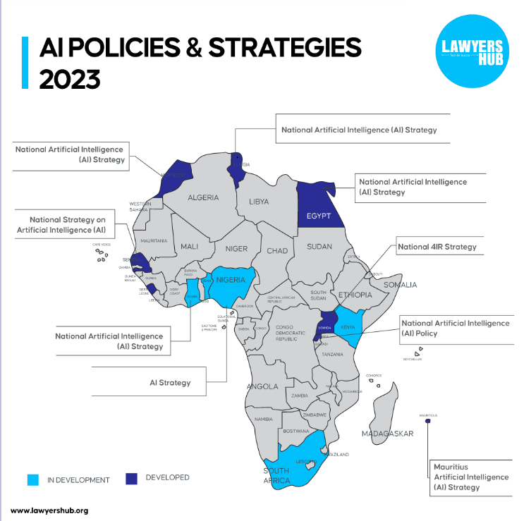 Africa's contribution to technological development has also been accompanied by several challenges. Weak regulatory, policy and oversight frameworks that have not kept pace with technological development have contributed to exploitation and abuse. The African Union has played a key and critical role in coordinating AI governance in Africa through a Continental AI Strategy that aims to establish ethical and equitable AI frameworks. The main aim of AI governance in Africa is on robust data protection laws and regulations, as the access to and control over data is crucial for responsible AI development. Many African countries are already developing their own national AI strategies that outline how they plan to leverage AI for socioeconomic development while mitigating potential harms. Countries such as Benin, Egypt, Nigeria, Mauritius, Rwanda, Senegal, Algeria and Kenya have made notable efforts in releasing their national AI strategies. It is worth noting that Rwanda is the only country with a national policy while other countries such as Ethiopia, Ghana, Morocco, South Africa, Tanzania, and Mauritania are making significant steps towards defining their AI strategies.