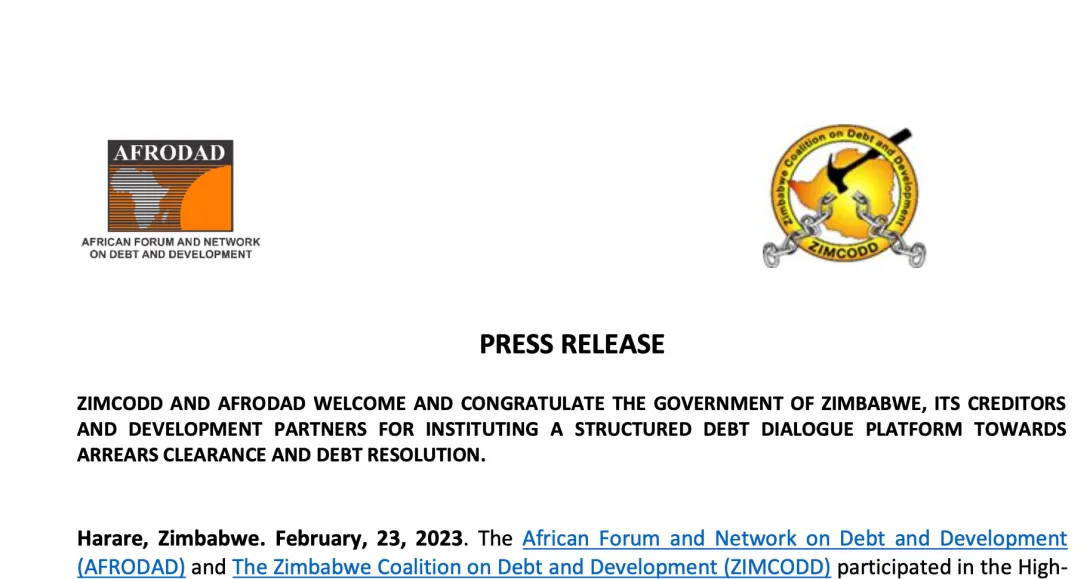 The government of Zimbabwe has instituted a structured Dialogue Platform, between itself, its Creditors, and development partners towards Zimbabwe’s arrears clearance and debt resolution. Prior to the meeting, both ZIMCODD and AFRODAD decried the failure of the government of Zimbabwe and the international creditor community to heed to repeated warnings by African Civil Society Organisations (CSOs) as captured in the African Borrowing Charter and the Harare Declaration. The risks of unsustainable debt has undermined development progress in Zimbabwe for several decades and has resulted in millions of poor and marginalised Zimbabweans suffering the impact of severe austerity measures, unemployment, poverty and extreme inequality. Therefore, ZIMCODD and AFRODAD stand ready to support and work with the government of Zimbabwe on its arrears’ clearance and debt resolution.