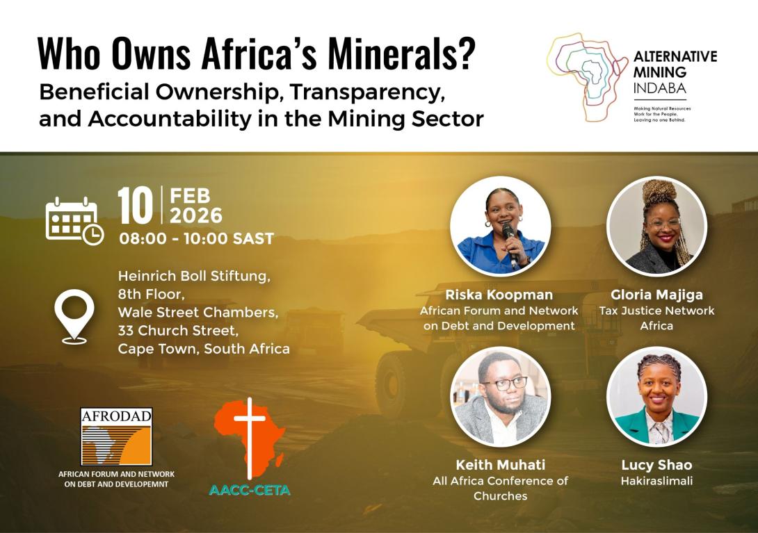 Join AFRODAD and the All Africa Conference of Churches (AACC), for a high-level interactive panel at the Alternative Mining Indaba 2026. The side session will probe who really owns and benefits from Africa’s critical minerals, how opaque ownership and weak disclosure enable illicit financial flows, and what accountable, gender‑just, community‑centred governance should look like. Speakers will share experiences from Kenya and Tanzania, amplify civil society, faith and community voices, and produce concrete policy asks to advance beneficial ownership transparency and domestic resource mobilisation across Africa.